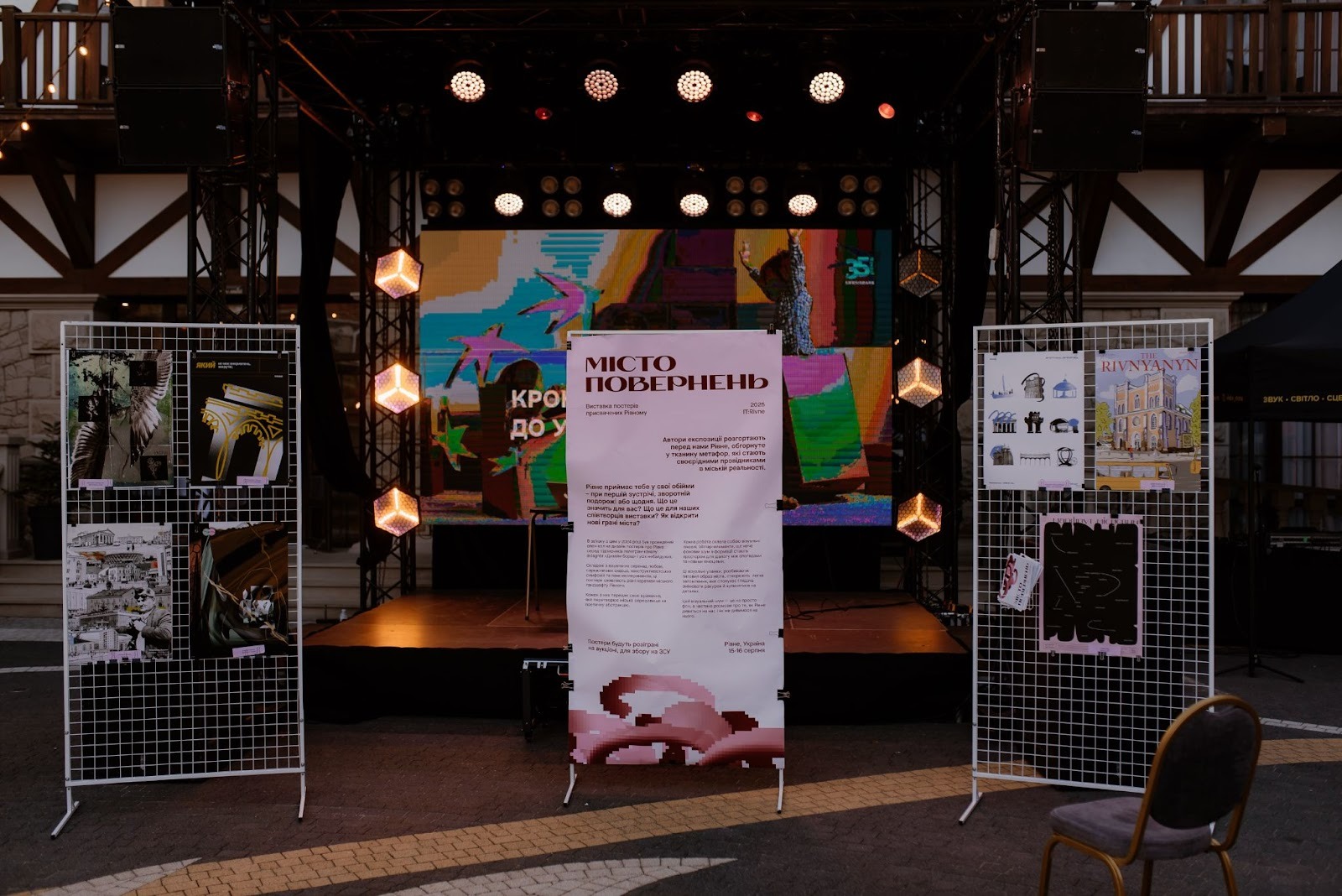 One of the event’s highlights was a charity poster auction dedicated to Rivne, held at the end of the first day. Local artists — Oleh Fedunchak, Bohdana Makarchuk, Alina Zhaivoronok, and others — donated their works for the cause. Each poster was unique: vivid colors, the city’s special atmosphere, and the authors’ personal stories. Guests eagerly participated in the bidding, sharing smiles and genuine admiration.